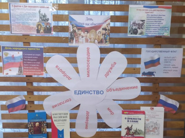 Ко Дню народного единства в Новофирсовской поселенческой библиотеке оформлена информационная выставка под названием «День, который нас объединяет». Книги и материалы ...