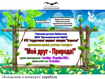 Приглашаем принять участие в конкурсе “Мой друг природа”. Этот конкурс дает уникальную возможность каждому из нас выразить свою любовь и уважение к окружающему миру, ...