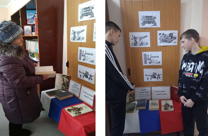 2 февраля отмечается 80- летие победы в Сталинградской битве. Эта битва известна, как одна из самых кровопролитных второй мировой войны, не имеющая себе равных. В Ивановской сельской библиотеке оформлена книжная выставка «Город мужества и славы» посвященная Сталинградской битве. Читатели библиотеки познакомились с такими художественными произведениями, как: «Живые и мертвые» К. Симонова, «Горячий снег» Ю. Бондарева, очерками и рассказами о великом сражении. Выставка направлена на то, чтобы навсегда сохранить в сердце благодарность к людям завоевавшим мир на Земле. А чтение книг о Великой Отечественной войне помогут детям стать настоящими патриотами и любить свою Родину.
