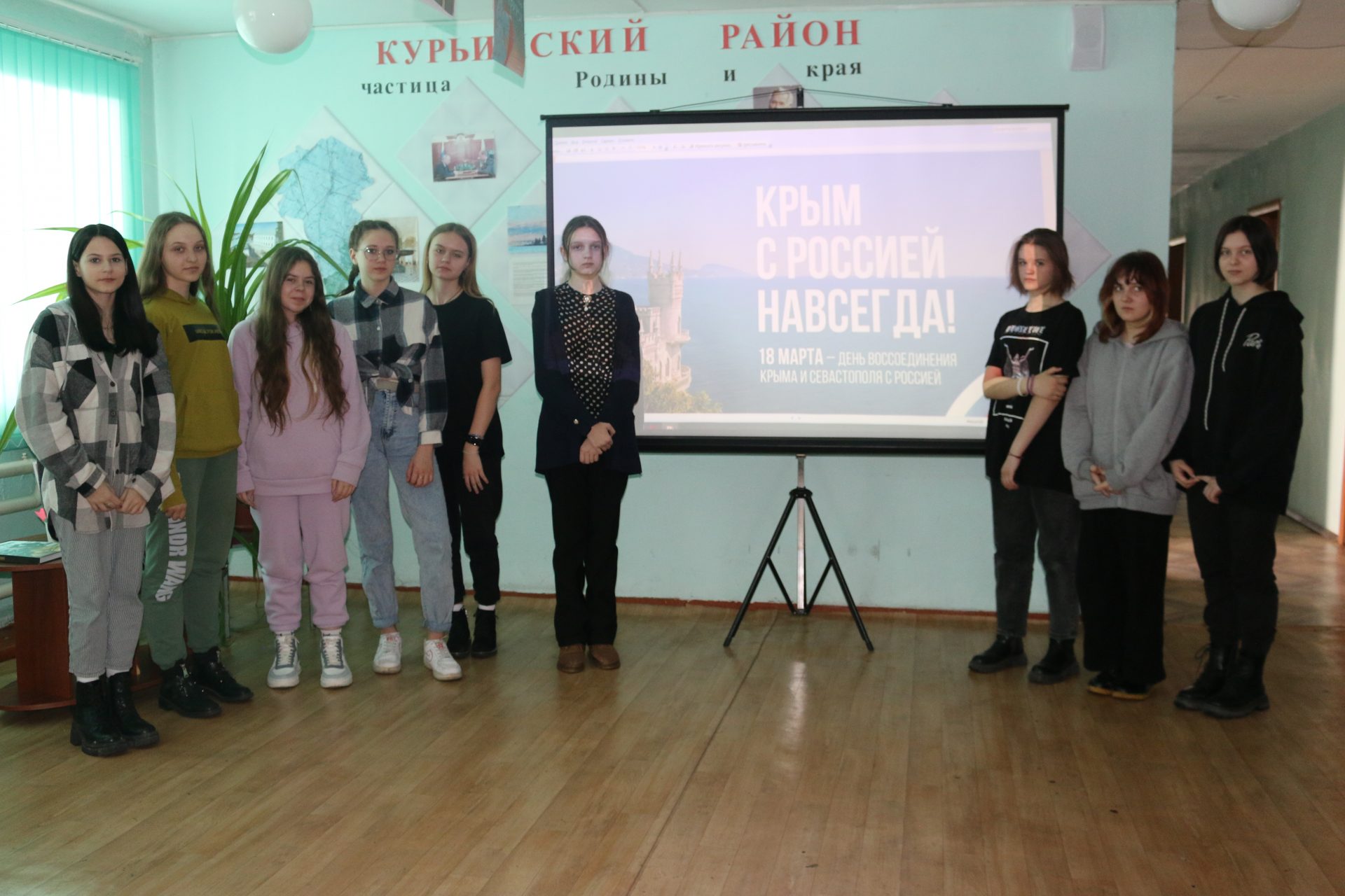 К этой дате сотрудники Курьинской центральной межпоселенческой библиотеки пригласили на исторический час «Россия и Крым – общая судьба» ребят из Курьинской СОШ. Им рассказали об истории праздника и о событиях, которые предшествовали воссоединению Крыма с Россией. Также гости приняли участие в викторине «Знаешь ли ты Крым?» Побывав в «путешествии» по городам полуострова, ребята узнали о достопримечательностях Крыма, особенностях его географического положения, известных людях, родившихся в Крыму. Также детям было рассказано о Международном детском центре «Артек», его истории. О строительстве новых зданий и других объектов инфраструктуры, системы распределения путевок и образовательной деятельности.