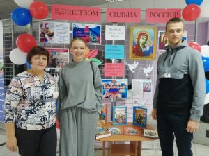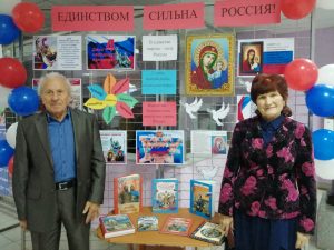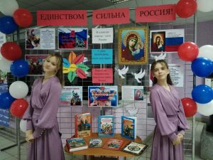 К этому событию Курьинская районная библиотека в фойе Дома культуры оформила выставку – инсталляцию «Единством сильна Россия».