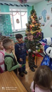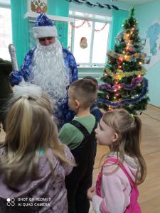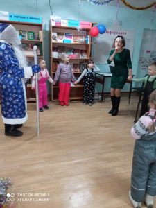 Дети с восторгом встретили Деда Мороза – Тарасова Александра Сергеевича и его помощницу Лосеву Ларису Николаевну  все вместе  зажгли ёлочку. Далее дети с огромным  удовольствием участвовали в весёлых и подвижных играх и хороводах.