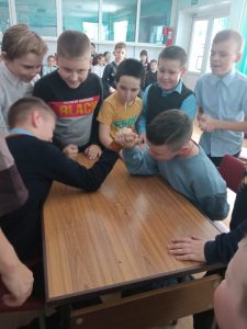В начале мероприятия библиотекарь Отто Е.В, познакомила ребят с историей возникновения праздника – Дня Защитника Отечества. И предложила мальчикам ненадолго стать солдатами. Как известно, чтобы стать настоящим солдатом, надо многое уметь и знать. Солдат всегда отличался ловкостью, смекалкой, остроумием, храбростью. Предложенные конкурсы и задания позволили определить, кто из ребят обладает такими качествами. В конкурсе «Доскажи фразу» молодые «новобранцы» по изображению на слайде составляли слова, по военной тематике, в конкурсе «Меткий стрелок» соревновались в ловкости попадания мяча в цель. Свою силу и выносливость, ребята продемонстрировали, в конкурсе «Армреслинг». В одном из конкурсов были задействованы девочки, они были медсестрами, перевязывали раненных бойцов, с чем справились на «Отлично».