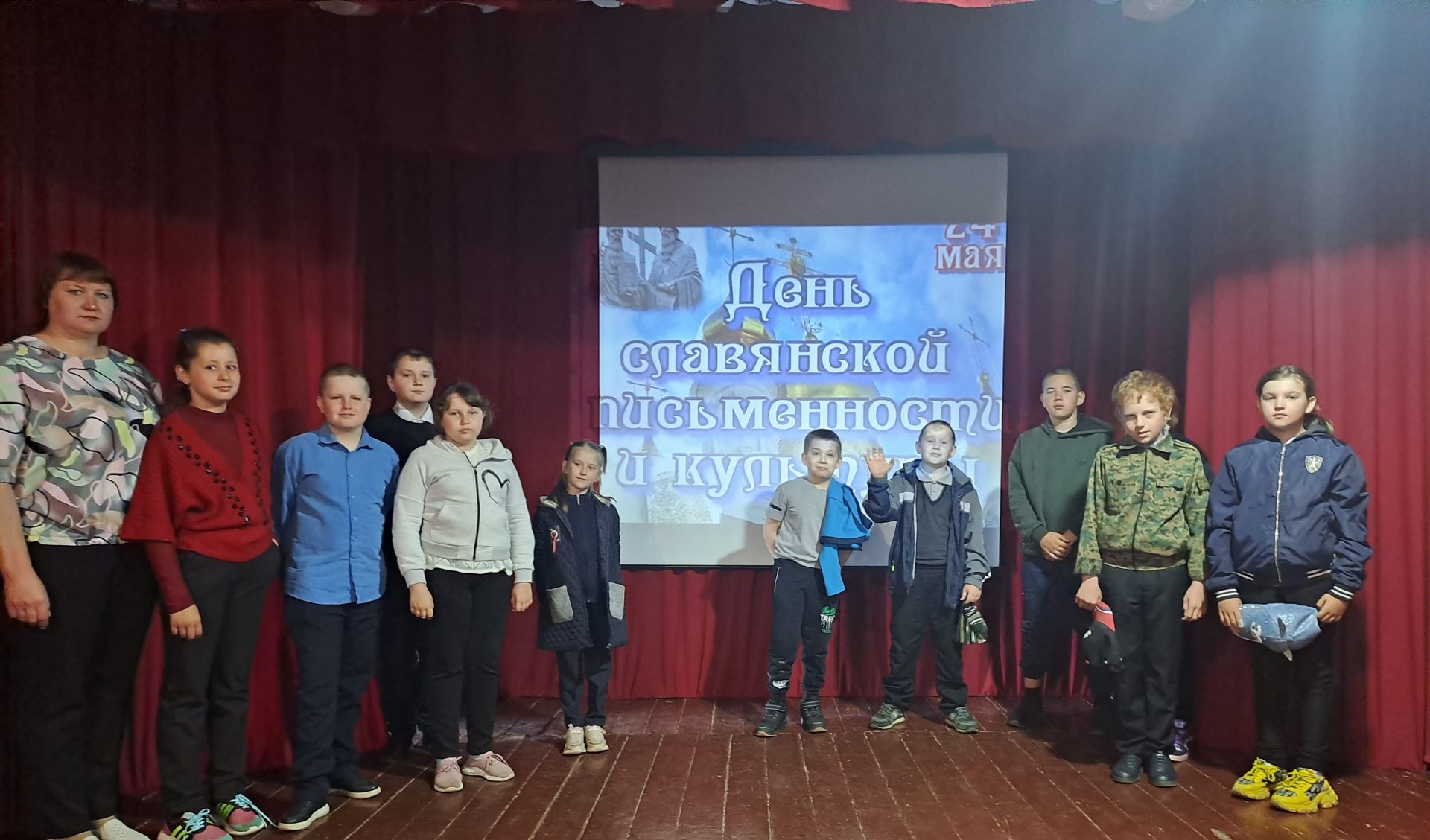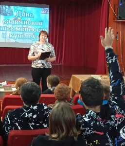 23 мая проведено совместное мероприятие для детей 2-6 классов «От глиняной таблички к печатной страничке» познавательная программа. Детям рассказали о том, как на Руси два просветителя, братья мудрые Кирилл и Мефодий придумали славянские буквы, и перевели с греческого языка на славянские книги. Познакомили детей с историей возникновения праздника. С помощью презентации показали  славянский алфавит – кириллицу. Из презентации дети узнали о том, как, чем и на чем наши предки писали книги. Также ребята ответили на вопросы викторины, посмотрели мультфильм «Как было написано первое письмо». В конце мероприятия ознакомились с книгами на выставке «Русскому слову посвящается».