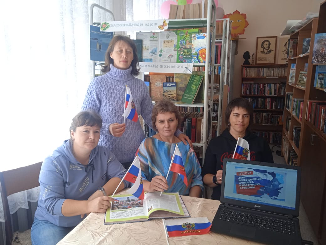 В ходе беседы, за круглым столом библиотекарь напомнила гостям историю вхождения новых регионов, по каким причинам жители ДНР и ЛНР стремились воссоединиться, а так же о гнёте киевского режима. Вспомнили живых и погибших героев, которые сейчас находятся в зоне СВО. Мероприятие завершилось прочтением стихотворения С. В. Сахаровой «Воссоединение». Этот день для всего народа России навсегда станет днём правды, справедливости и объединения.