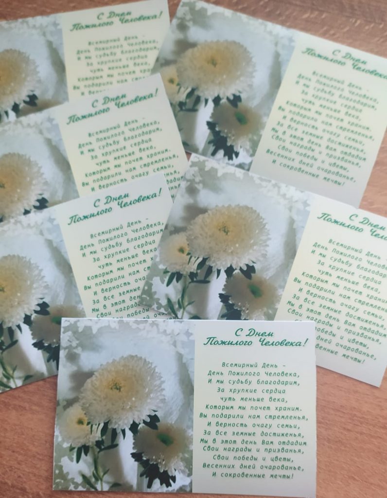 День пожилых людей – это светлый праздник. Известно, что каждый человек нуждается во внимании, а в мудром возрасте, особенно. В Новофирсовской поселенческой библиотеке проходит с первого октября акция – поздравление “Дарите добро! Люди старшего поколения, которые приходят к нам за книгами и журналами получают в подарок поздравительную открытку с наилучшими пожеланиями.