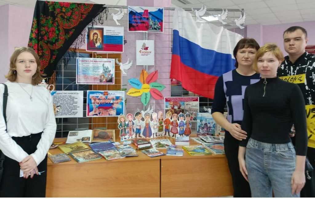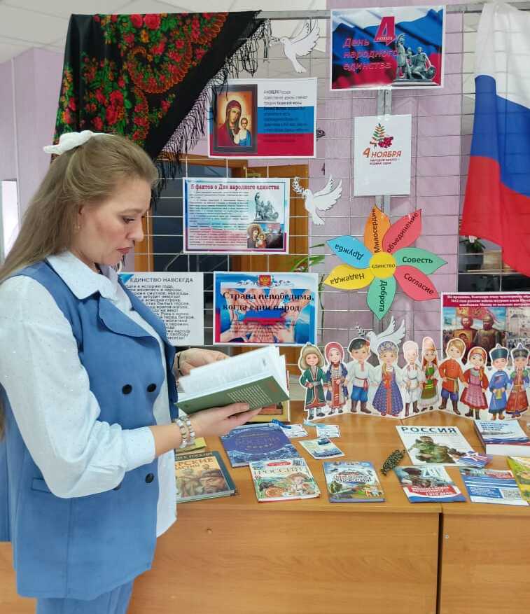 4 ноября во Дворце культуры и искусств состоялся торжественный праздничный концерт посвященный Дню народного единства. Курьинская центральная библиотека подготовила книжно – иллюстративную выставку – инсталляцию «Народов много – Родина одна!» Книги, экспонаты представленные на выставке, расскажут о главных событиях в истории государства, об истории праздника, о многообразии культур народов России, о взаимном уважении и сотрудничестве в нашей многонациональной стране.