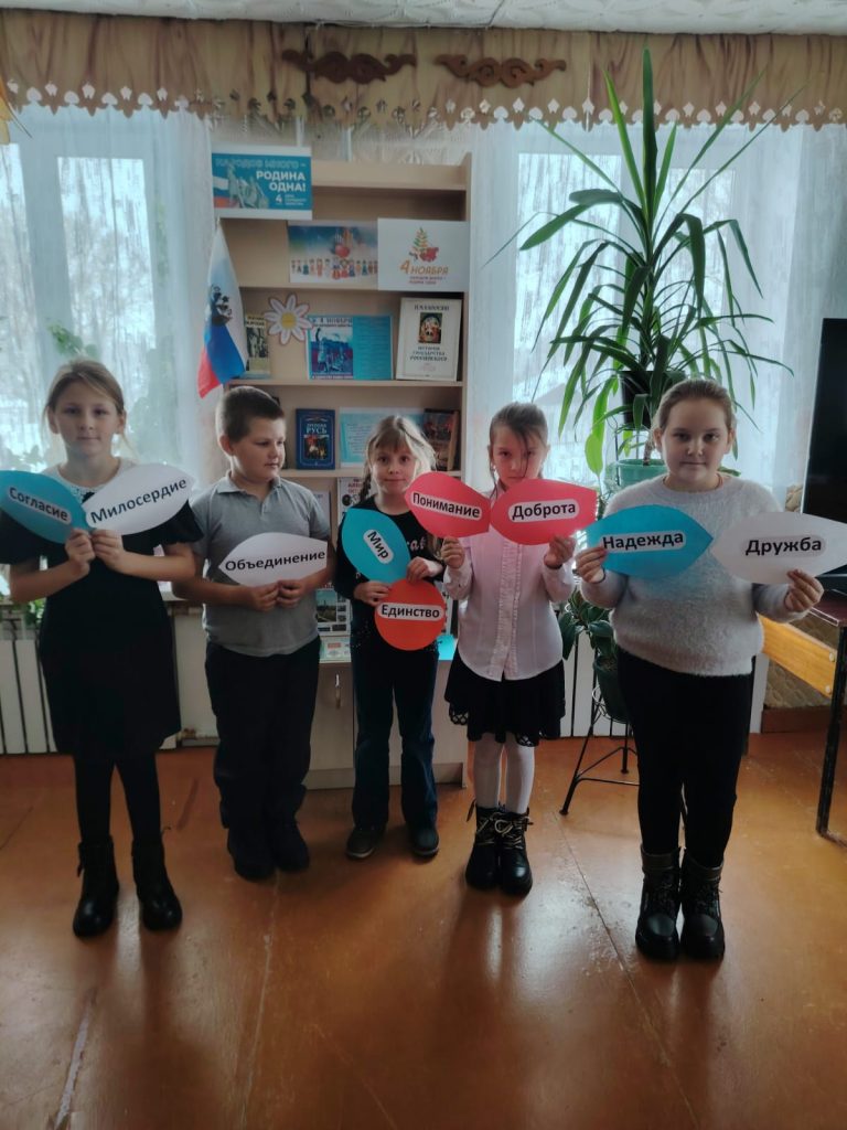Ребята узнали об истории праздника, о том, что произошло на Руси более 400 лет назад. Как единение помогло русскому народу справиться с коварным врагом, о подвиге Кузьмы Минина и Дмитрия Пожарского.  Также вспомнили и других героев Отечества, таких как Сусанин, Александр Невский, Петр Первый, Кутузов и др., которые служат символом верности, мужества, патриотизма. Ребята проверили свои знания в разгадывании кроссворда, вспомнили государственные праздники и даты. Расширили кругозор с помощью пословиц. Также вспомнили народности, проживающие на территории нашей страны. Закрепили свои знания о государственных символах России – гербе, флаге и гимне, об их великом значении для каждого гражданина.