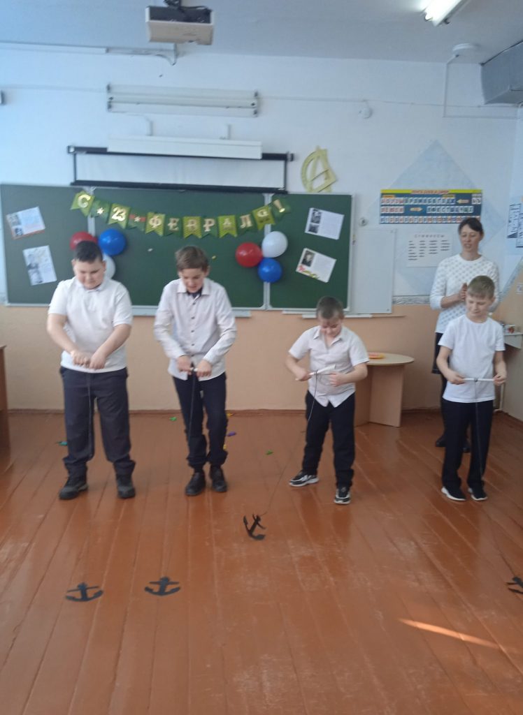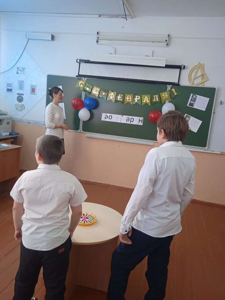 Далее была проведена игра «Поле Чудес», приуроченная ко Дню защитника Отечества. В игре приняли участие три тройки игроков. Первая -папы, а две следующих- мальчики. Вопросы касались истории русской армии и героических защитников Родины. По итогам трёх туров в финал вышли: Семён Гончаров, Птицин Максим и Гончаров Сергей . Ребята и папы прошли все испытания игры «Поле Чудес» умело отгадывая слова. Победителем игры стал Гончаров Сергей . Игра «Поле Чудес» прошла ярко, оживлённо и принесла бурю положительных эмоций всем присутствующим. По окончании игры все участники получили сладкие призы. Далее провели развлекательную программу «Солдатская доля» . Мальчики на время одевали гимнастерку,папы соревновались на меткость (нужно было попасть дротиком в шары на расстоянии), а конкурс «подними якорь» стал таким зажигательным, что в нем приняли участие и папы ,и мальчики и даже мамы. Закончилось мероприятие чаепитием .