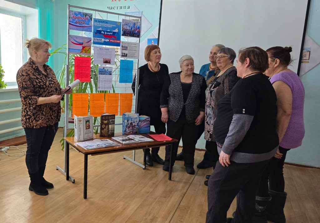 Для женщин клуба «Мастерицы» была проведена беседа «Россия и Крым — едины». Милованова Наталья подготовила увлекательный рассказ об истории Крыма, о важных событиях в истории республики, о значении полуострова для России.