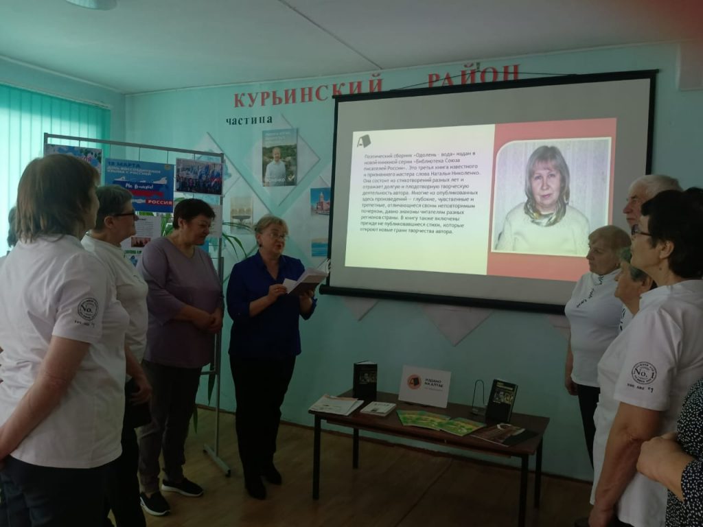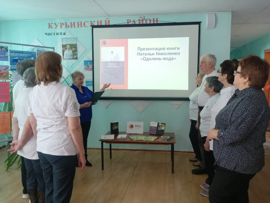 В рамках XX краевого фестиваля книги «Издано на Алтае» в Курьинской межпоселенческой библиотеке 19 марта состоялась презентация книги Натальи Николенко «Одолень – вода». Поэтический сборник издан в новой книжной серии «Библиотека Союза писателей России». Это третья книга известного и признанного мастера слова Натальи Николенко. Она состоит из стихотворений разных лет и отражает долгую и плодотворную творческую деятельность автора. Многие из опубликованных здесь произведений — глубокие, чувственные и трепетные, отличающиеся своим неповторимым почерком, давно знакомы читателям разных регионов страны. В книгу также включены прежде не публиковавшиеся стихи, которые откроют новые грани творчества автора.
