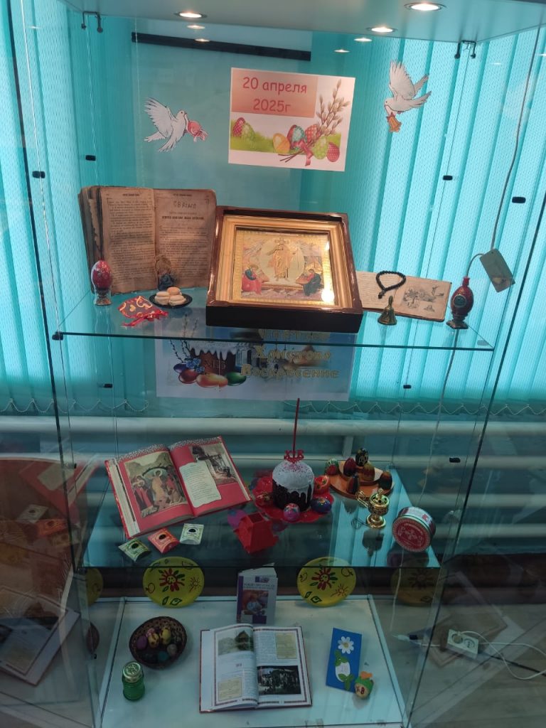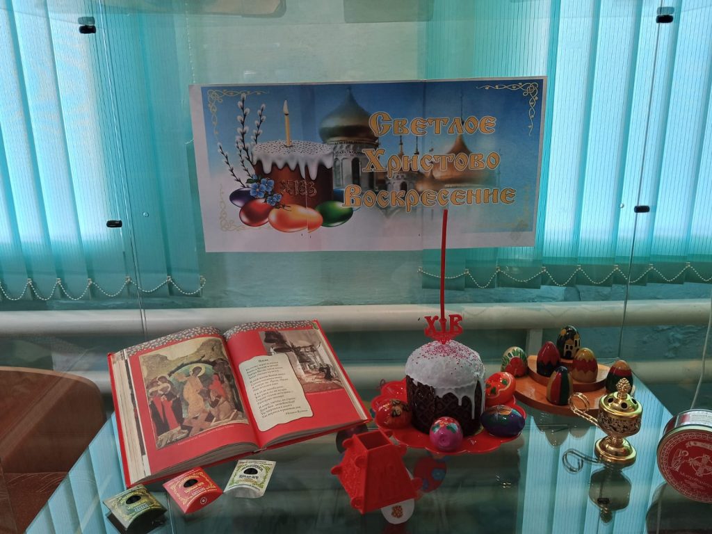 Чтобы расширить кругозор детей о православном празднике в фойе Курьинской библиотеке работниками детской библиотеки была оформлена выставка -праздник « Светлое Христово Воскресение». В оформление выставки представлены материалы, предоставленные Настоятелем Знаменской церкви иереем Сергием Котельниковым, книги из фонда детской библиотеки и пасхальные атрибуты.  Приглашаем желающих посетить нашу праздничную выставку!!!
