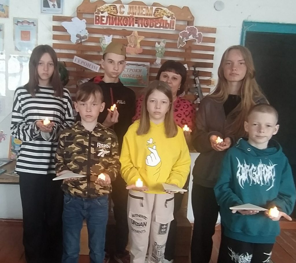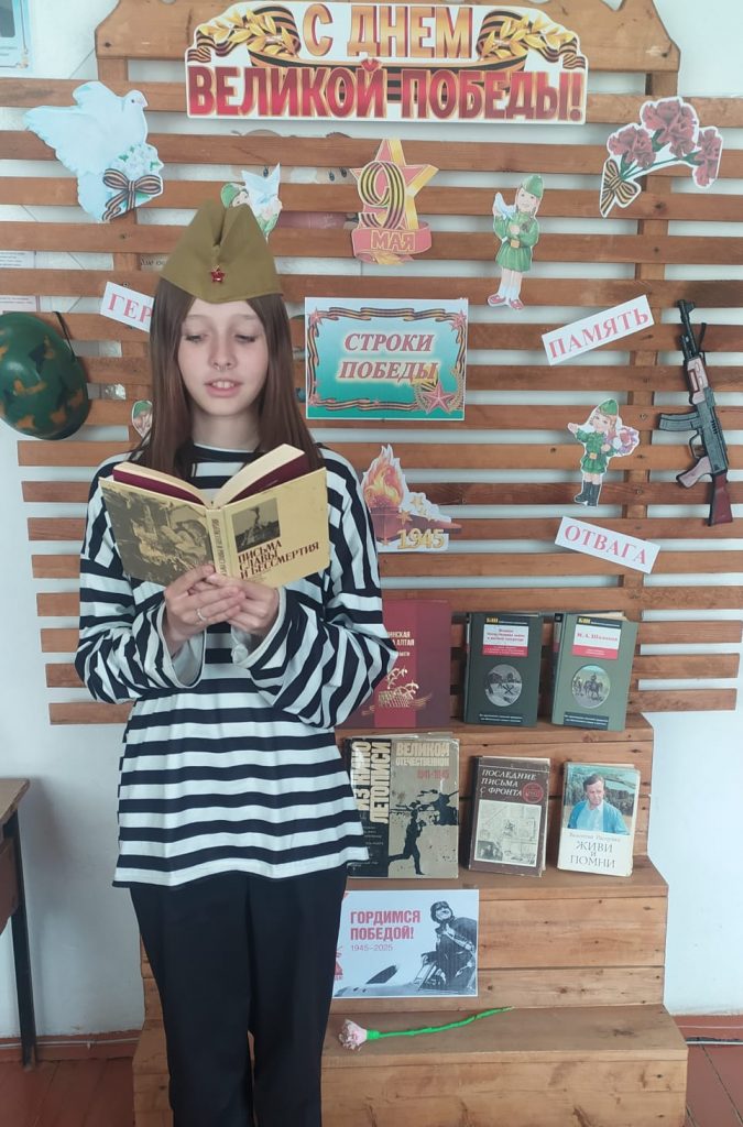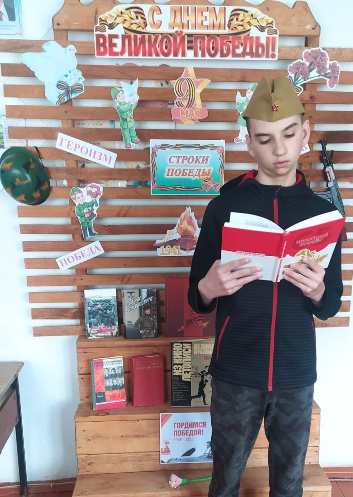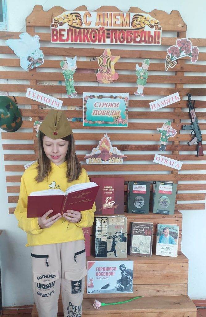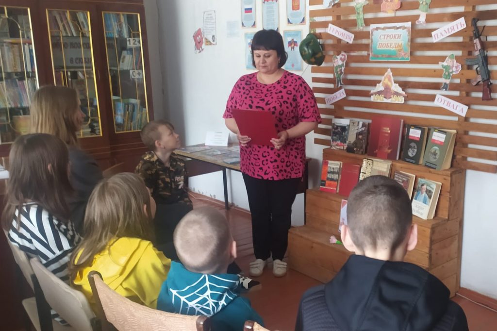 24 апреля в Новофирсовской поселенческой библиотеке состоялась ежегодная акция для детей в формате ” “Библиосумерки – 2025″, посвящённая году Защитника Отечества и 80 – летию Победы. В самом начале мероприятия ребята вместе с библиотекарем Неверовой Г. В. совершили исторический квиз ” Давайте вспомним о войне “, в ходе которого отвечали на вопросы и рассуждали по данной тематике. Далее был проведён мастер – класс ” Солдатский треугольник с фронта “, во время которого присутствующие делились личными историями о героизме своих родных, сражавшихся на фронте и трудившихся в тылу. Не менее захватывающим и интересным стало чтение произведений о войне и победе среди детей. Также ребята предоставили свои рисунки для выставки ” Под мирным небом”, подготовленные заранее. К данному мероприятию в библиотеке оформлена выставка – инсталляция “Строки Победы”. На ней представлена художественная литература: рассказы, повести, стихи известных авторов, таких как Шолохов, Распутин, Твардовский и других.