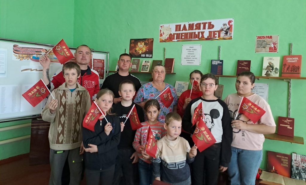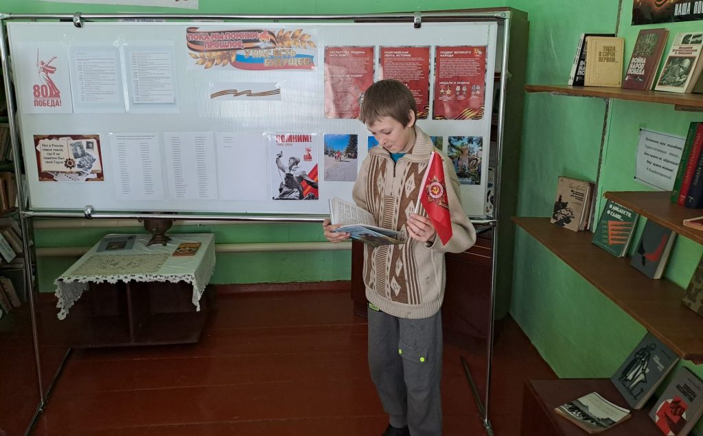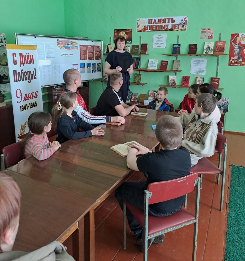 К данному мероприятию был оформлен стенд « Пока мы помним прошлое, у нас есть будущее». На нем имена земляков, которые ушли защищать Родину во время Великой Отечественной войны, перечислены важнейшие даты периода Великой Отечественной войны. Представленные на нем фотографии рассказывают, как молодое поколение села чтит память о сороковых – фронтовых. В завершение детям были предложены книги о войне для чтения дома.