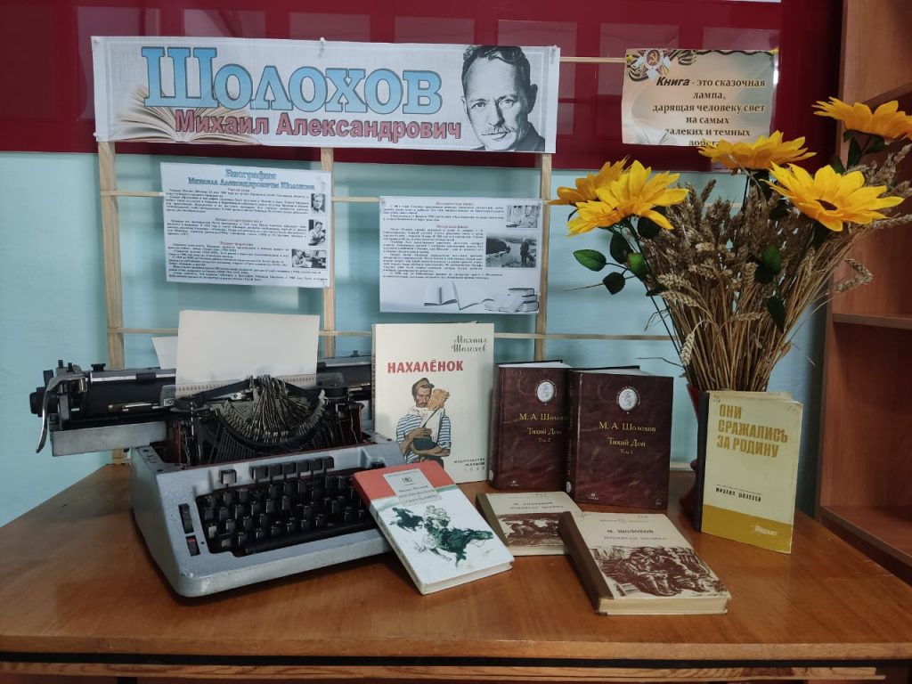 К мероприятию в фойе библиотеки была создана атмосфера приближающего праздника Великой ПОБЕДЫ, оформлены выставка :« Творчество Шолохова- великий дар человечеству». Выставка будет работать до 26 мая . Ждем своих читателей!!!!