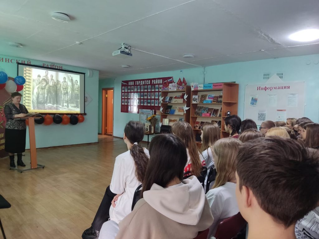 В рамках Х краевого патриотического флешмоба «Связь поколений не прервётся!» 5 мая в Курьинской центральной детской библиотеке для учащихся 7а – класса Курьинской средней школы была представлена литературно- художественная композиция «Судьба человека. Листая страницы, пересматривая фильм». В год 80-летия Великой Победы и 120 – летия со дня рождения писателя М.А. Шолохова сотрудники детской библиотеки предложили участникам мероприятия посмотреть на войну глазами великого писателя, и помог им в этом его рассказ «Судьба человека». В начале мероприятия ведущая Винникова О. В. рассказала участникам мероприятия о писателе-юбиляре, его творчестве и фронтовом пути. А затем ребята полностью познакомились с содержанием рассказа. Шуршали страницы, мелькали черно- белые кадры замечательного фильма С.Ф.Бондарчука, не оставляя никого равнодушным. Действительно, во все времена перед человеком встает ряд вопросов: « Что такое жизнь, что такое судьба? Как прожить жизнь?» .У человека всегда есть выбор – остаться человеком или потерять человеческое достоинство. Несмотря на все трудности и скорби, главный герой произведения Андрей Соколов не только не пал духом – он выжил и сохранил способность любить. Образ Соколова — не конкретный образ какого-то человека, а образ всего русского народа – несломленного, непобеждённого, сохранившего чувство сострадания, несмотря на все испытания.
