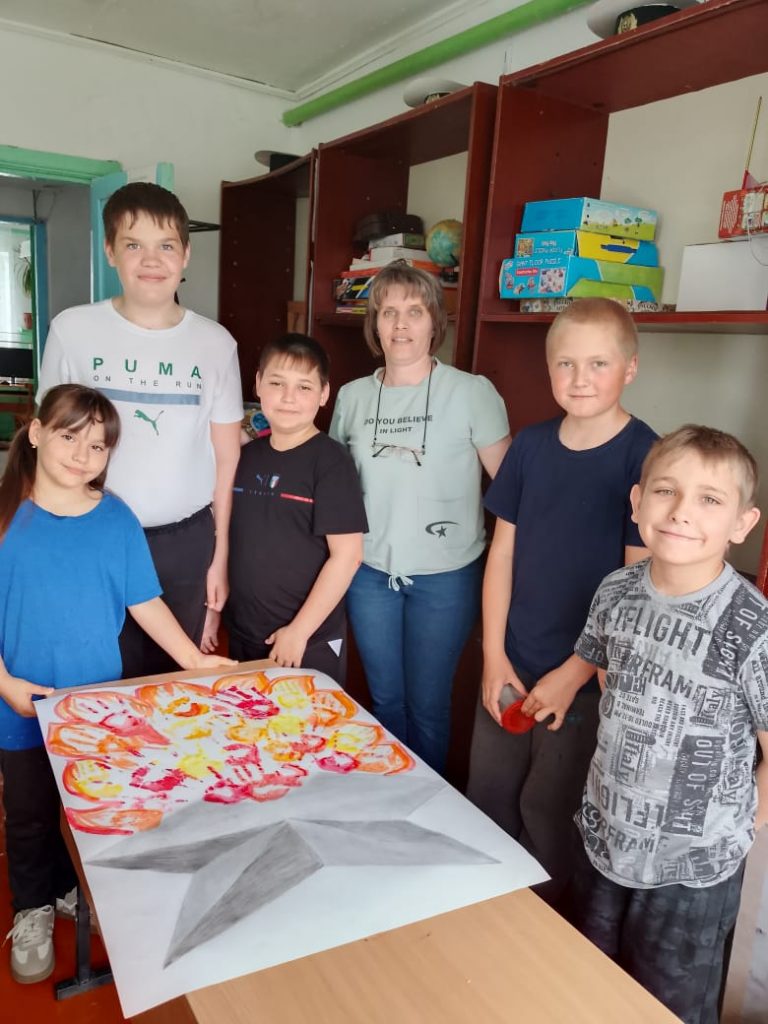 В России стартовала акция “Огонь памяти” к 80-летию Победы.В воскресенье представители Народного фронта, участники “Команды Путина”, военные и общественники собрались у стен Московского Кремля в Александровском саду, чтобы перенести частицы Вечного огня, взятого на Могиле Неизвестного Солдата, в специальные лампы. Их отвезут в российские регионы и другие государства. В Казанцевской  поселенческой  библиотеке мы с ребятами тоже изобразили такую частицу.