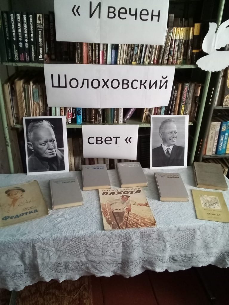 В Бугрышихинской поселенческой библиотеке оформлена книжная выставка ” И вечен Шолоховский свет “, посвященная 120 – летию со дня рождения Михаила Александровича Шолохова. Его имя хорошо известно читателям. Им созданы романы, повести, рассказы, очерки. Герои его произведений – люди мужественные, волевые, отдающие весь жар своего сердца на благо любимой Отчизны. Вся жизнь и литературная деятельность писателя была связана с Доном. Писатель горячо любил свои родные места, в жизни донского казачества он черпал темы, образы, материал для своих художественных произведений.