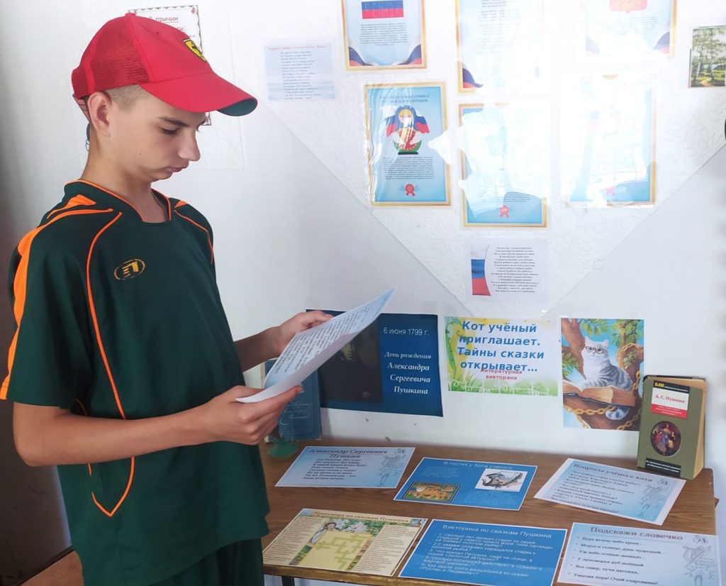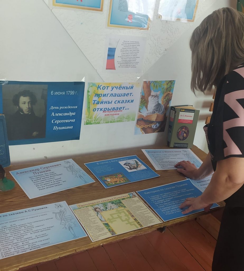 К Пушкинскому дню в Новофирсовской поселенческой библиотеке оформлена выставка – викторина под названием “Кот учёный приглашает. Тайны сказки открывает… “, на которой представлены задания для детей и взрослых по творчеству писателя. Это кроссворд по сказкам Пушкина, тесты, вопросы Кота учёного, викторина, ” Подскажи словечко”. Все, кто хочет проявить свои знания и интеллект, освежить в памяти любимые строки, обязательно должны посетить данную выставку, которая действует до 12 июня.
