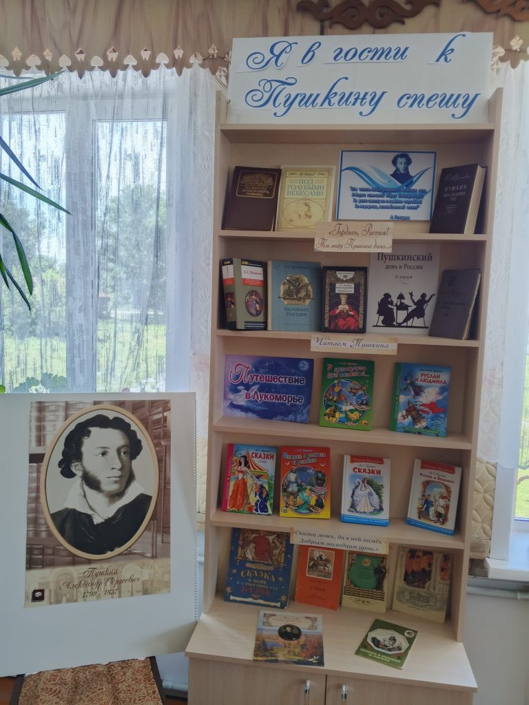 К мероприятию была оформлена книжно-иллюстративная выставка «Я в гости к Пушкину спешу…», на которой представлены книги о жизни и творчестве А.С. Пушкина.