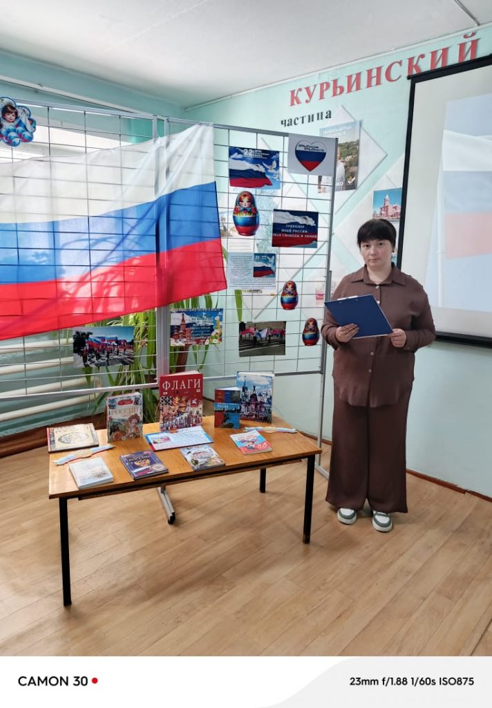 В честь этой знаменательной даты в Курьинской центральной библиотеке прошел патриотический час «Триколор моей России». На мероприятии присутствовали координатор Молодежного движения и волонтеры Победы.