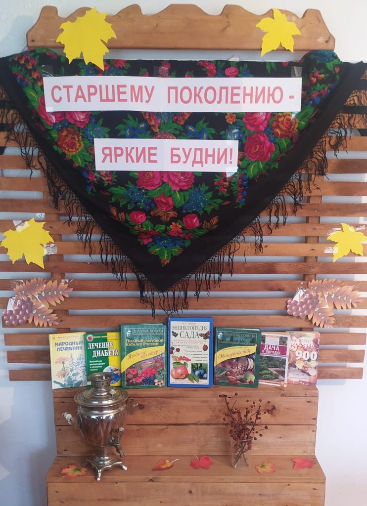 1 октября мы традиционно отмечаем Международный День пожилых людей. “Старшему поколению – яркие будни! ” – под таким названием начала свою работу выставка – инсталляция в Новофирсовской поселенческой библиотеке. На ней можно познакомиться с книгами, которые помогут продлить молодость. Также в литературе представлены рекомендации и практические советы по укреплению здоровья, издания для садоводов и дачников. Тем, кто любит готовить – книга с рецептами полезных блюд. В старшем возрасте необходимо иметь активную жизненную позицию и находить занятия и увлечения по душе. Приглашаем посетить нашу выставку, которая действует до конца октября.