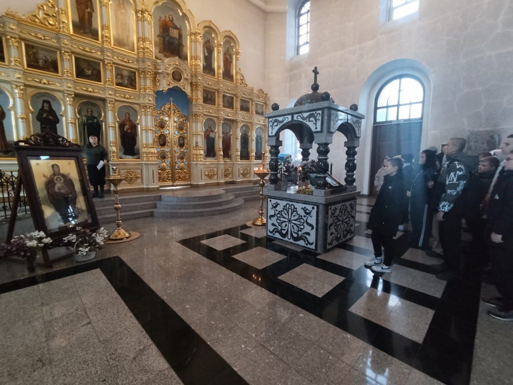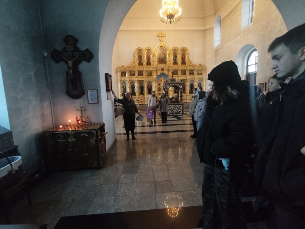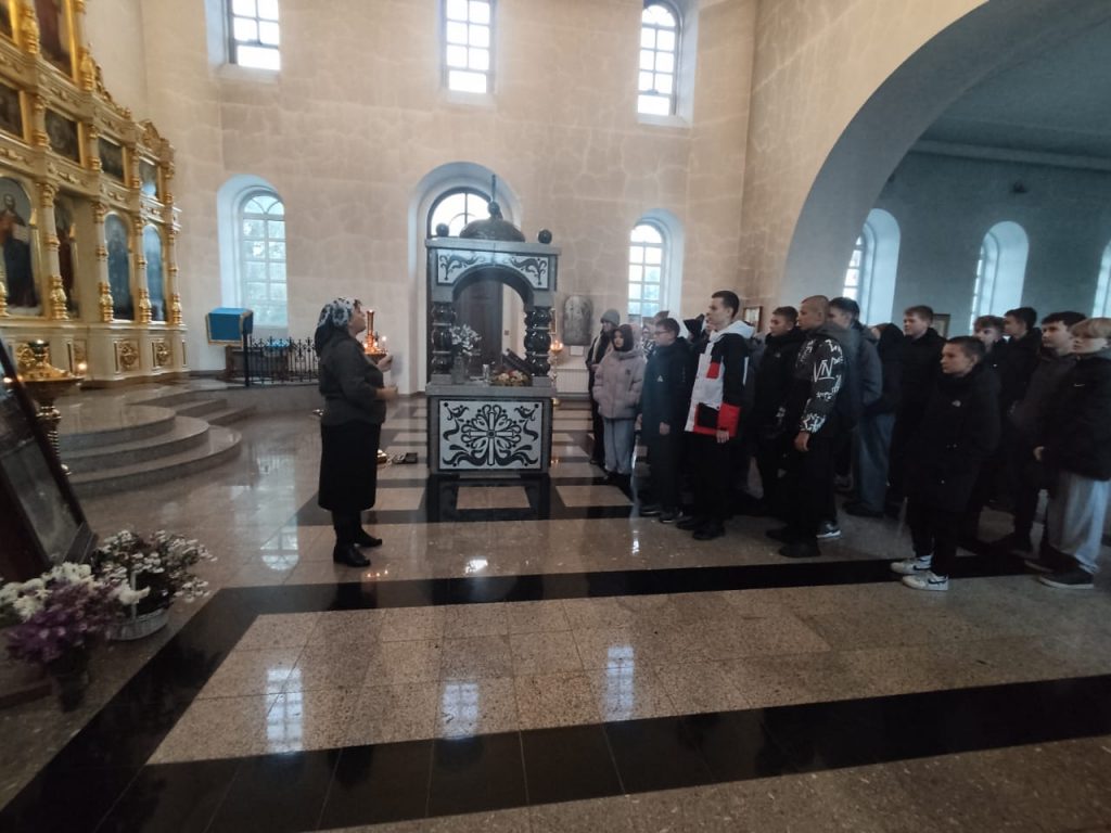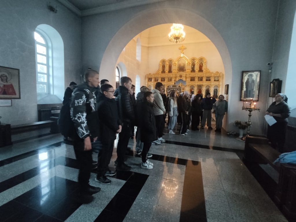 Необычный урок «Разговор о важном» был проведен 13 октября сотрудниками районной детской библиотеки для учащихся 8-а и 8-б классов ( с участием детей с ограниченными возможностями здоровья) Курьинской средней школы. Библиопортрет «Апостол Алтая» был посвящен 190-летию со дня рождения митрополита Макария (Невского) — выдающегося миссионера и просветителя Алтая. По благословению иерея Сергия было решено провести этот урок в стенах Знаменской церкви. В иконостасе нашего храма находятся иконы обеих святых Макариев – преподобного Макария (Глухарева) и святителя Макария (Невского). Ведущая мероприятия библиотекарь О.В. Винникова кратко рассказала ребятам о преподобном Макарии (Глухареве) и отдельно остановилась на житии Апостола Алтая – Макарии (Невском). Родился Владыка в праздник Покрова Пресвятой Богородицы в 1835 г. в с. Шапкино Владимирской губернии. Он был шестым ребенком в бедной семье причетника сельского храма Рождества Пресвятой Богородицы Андрея Парвицкого. С раннего детства Михаил был связан с молитвой. Промыслом Божием в 8-летнем возрасте Михаил оказывается в Тобольске, где получает отличное образование в Тобольской семинарии и с горячим сердцем идет служить Богу, неся Благую весть к алеутам алтайским. Значительную часть жизни святитель посвятил Алтайской духовной миссии: приехал сюда в 1855 году, выучил язык и обычаи местных народов. Новому служению Михаил Невский посвятил себя всецело. Миссионерство стало для него равнозначно жизни. Девяностолетний земной путь митрополита Макария от первого дня до его блаженной кончины отмечен чудесами и духовно знаменательными событиями. В 2000 году на Архиерейском Соборе митрополит Макарий был причислен к лику святых. Ведущая мероприятия презентовала ребятам книгу «Митрополит Макарий» Виктора Шипилова из серии «Алтай. Судьба. Эпоха». Эта книга будет ждать своих читателей в читальном зале детской библиотеки. На память о проведенном мероприятии был сделан общий снимок.