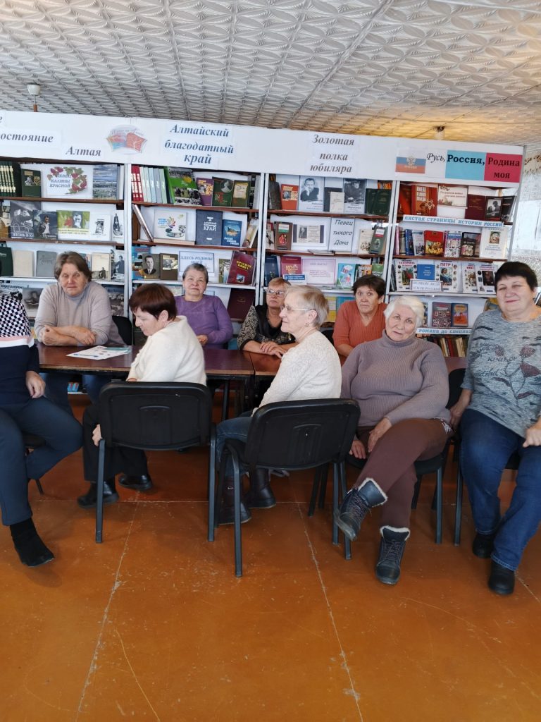 12 октября в Усть- Таловской поселенческой библиотеке для участниц клуба общения «Зимняя вишня» прошёл час полезных советов «Будьте здоровы – живите на радость». В начале мероприятия продемонстрировали электронную презентацию «Особенности пожилого возраста». Разговор шёл об основах здорового образа жизни для пожилых людей: оптимальный режим работы и отдыха, сбалансированное питание, достаточная двигательная активность, отсутствие вредных привычек, а также позитивное отношение к жизни. Участницы клуба узнали много полезного о здоровом образе жизни и о том, как поддерживать свое здоровье. С большим интересом прослушали информацию о наиболее подходящем для пожилых людей виде физической активности – скандинавской ходьбе.