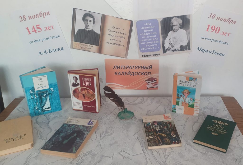 В честь 145 – летия со дня рождения А. Блока, русского поэта Серебряного века и 190 – летия американского писателя М. Твена в Новофирсовской поселенческой библиотеке открылась выставка – юбилей под названием “Литературный калейдоскоп”. Данная экспозиция сочетает миры русского символизма и американского юмора, представляющая их ключевые произведения и биографические материалы. Это два гения – два разных мира, где цель – пробудить интерес к классике и показать, как великие писатели отражали свои эпохи. Эта выставка позволит читателям увидеть, как два мастера слова, жившие в разное время и в разных странах, создавали свои бессмертные произведения, отражая уникальные черты своей культуры. ” Литературный калейдоскоп ” станет настоящим подарком для всех поклонников русской и зарубежной классики, а также откроет новые грани творчества поэта А. Блока и писателя М. Твена. Данная выставка действует до 1 декабря.