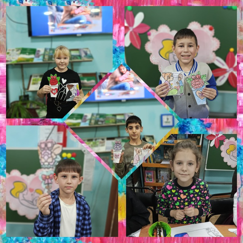 « Все для любимой мамы». На мероприятии дети узнали историю возникновения праздника, участвовали в конкурсе « Ласковое слово для любимой мамы», читали вдохновенно стихи и в заключении мероприятия был проведен мастер- класс . В ходе мастер-класса ребята научились создавать что-то красивое, проявлять фантазию, выражать эмоции и радоваться результату своего труда. Нет ничего дороже подарка сделанного своими руками! Значит, мамы в день праздника будут приятно удивлены, а детишки с радостью будут дарить подарки, которые сделали сами. В заключении мероприятия был проведен флешмоб «Воздушный поцелуй для любимой мамы».