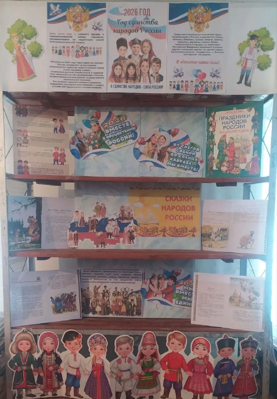 2026 год объявлен президентом Годом единства народов России. В Новофирсовской поселенческой библиотеке открылась тематическая выставка “В единстве народов – сила России”, которая будет экспонироваться до конца года. Она направлена на укрепление дружбы народов РФ, демонстрирует многообразие их культур, традиций и истории. Также читатели могут ближе познакомиться с разделом данной выставки ” Сказки народов России “.