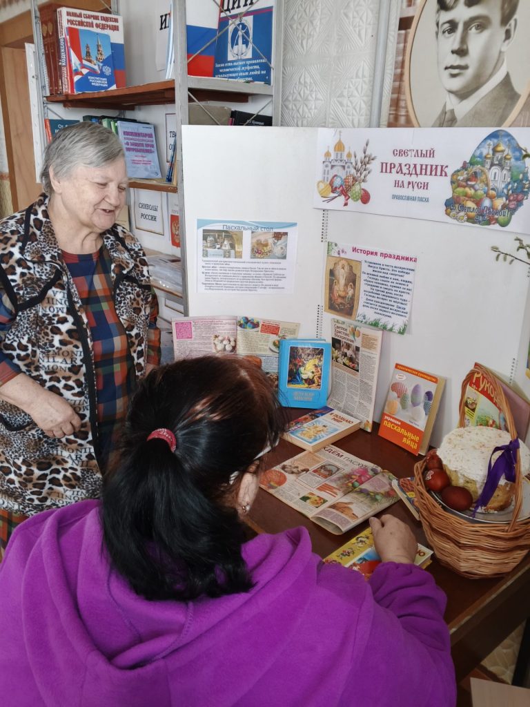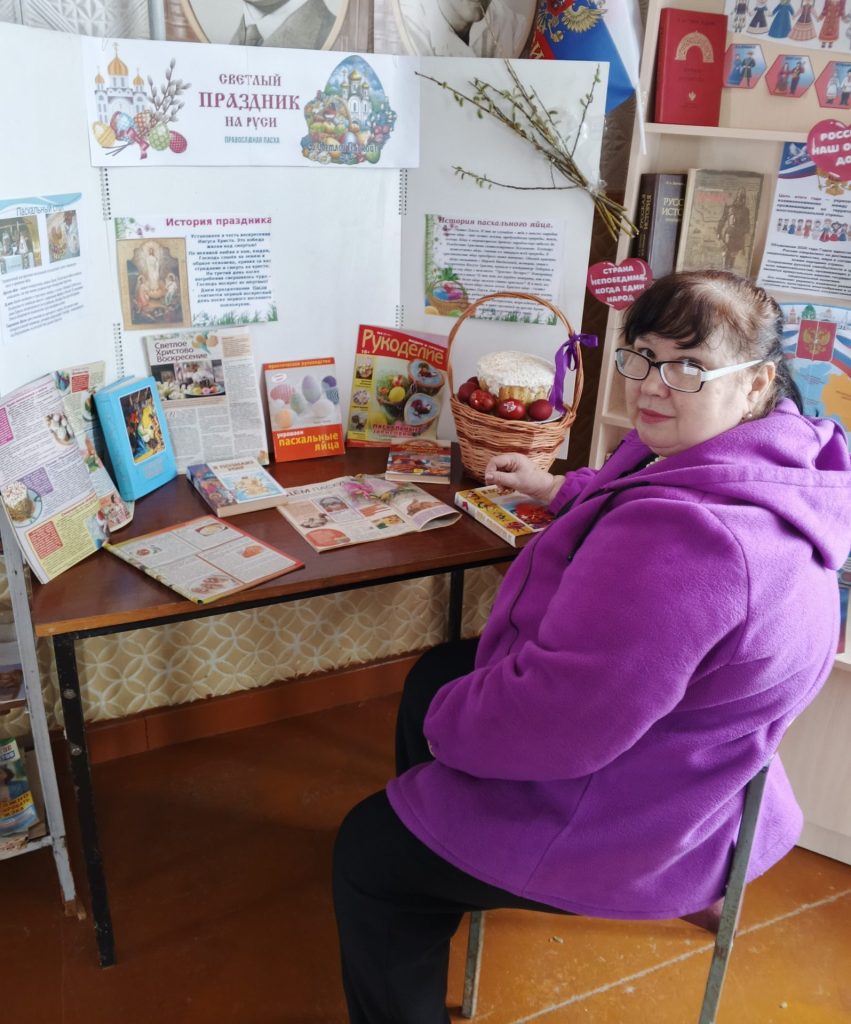 В Усть-Таловской поселенческой библиотеке, оформлена выставка -праздник «Светлый праздник на Руси», посвящённая главному православному празднику.