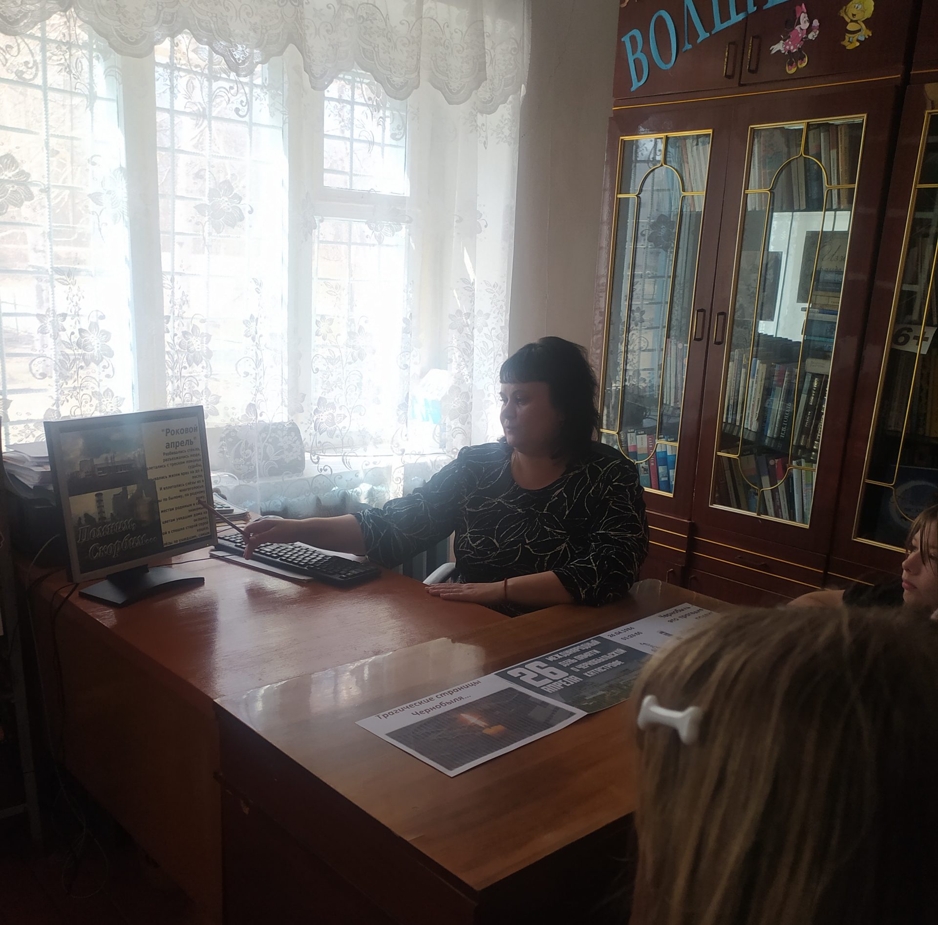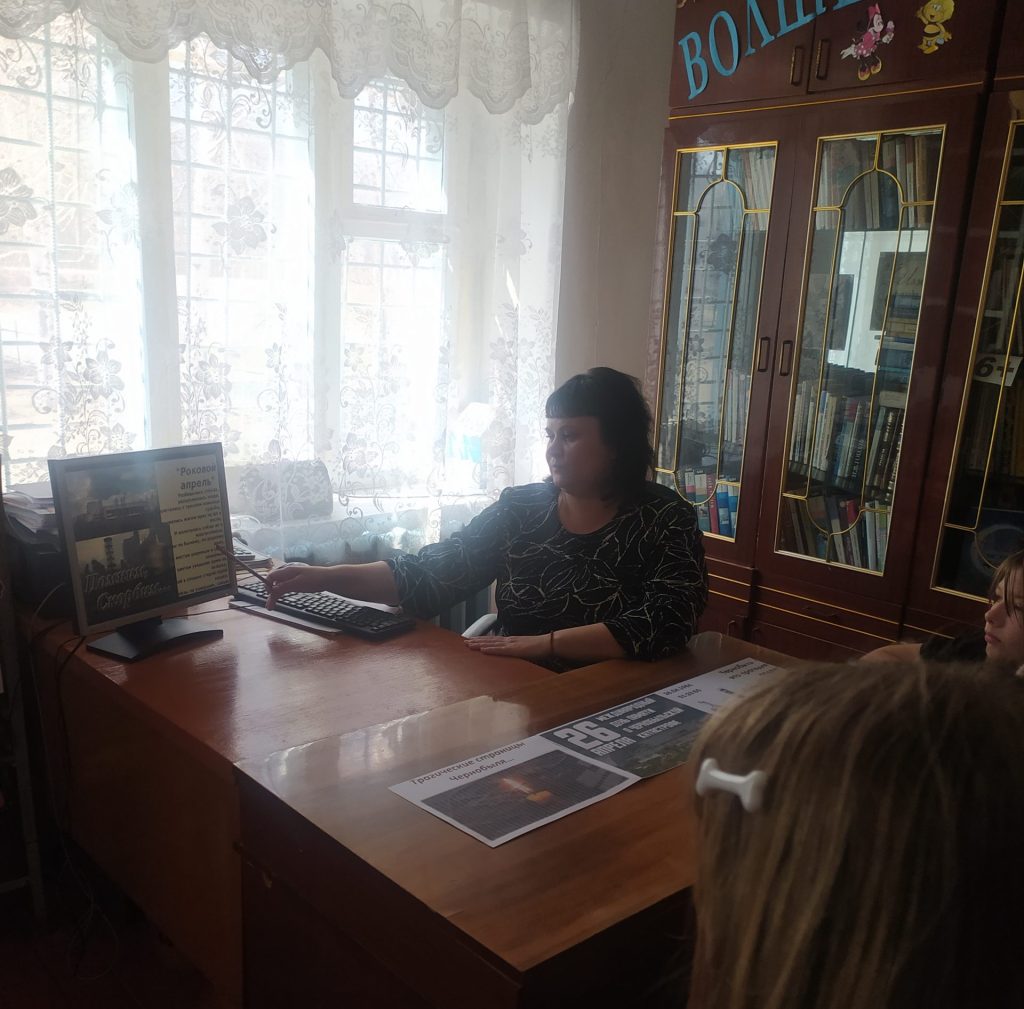 26 апреля весь мир отмечает Международный день памяти жертв радиационных аварий и катастроф. В этом году исполняется 40 лет со дня одной из самых масштабных техногенных катастроф XX века — аварии на Чернобыльской АЭС, произошедшей в 1986 году. В канун 40 годовщины Чернобыльской трагедии в Новофирсовской поселенческой библиотеке состоялась беседа – обсуждение «Трагические страницы Чернобыля». Мы собрались, чтобы почтить память и вспомнить имена тех, кто спас мир от радиоактивной беды: пожарных, военных, медиков, ликвидаторов аварии, наших земляков. Поговорили об истории создания Чернобыльской АЭС, о причинах возникновения аварии, масштабах трагедии. Были продемонстрированы фрагменты видеопрезентации о страшнейшей катастрофе в истории человечества. Мы должны помнить о Чернобыле ради будущего, знать об опасности радиации, чтобы подобные катастрофы больше не повторились.