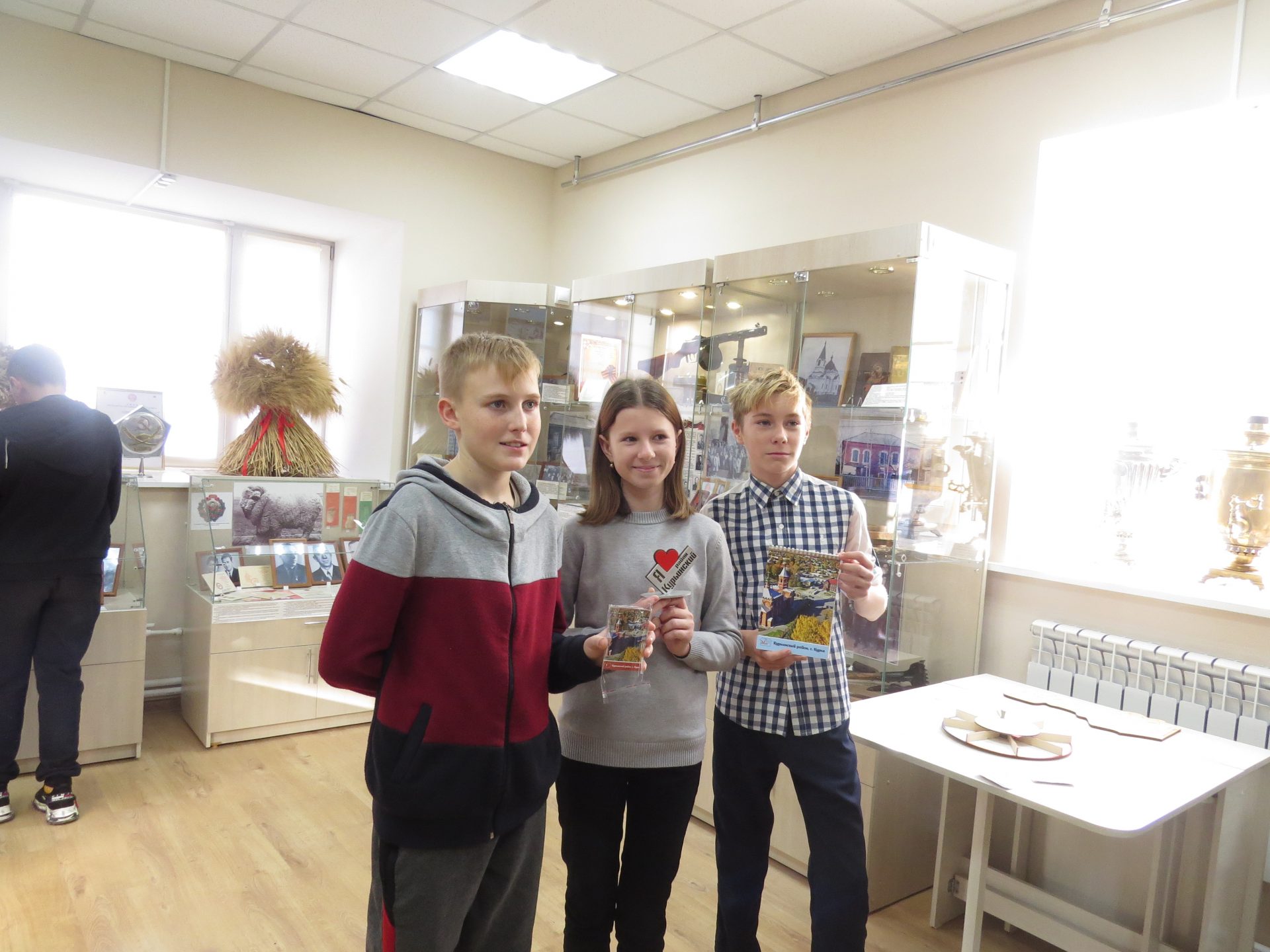 Осенние каникулы в Курьинском краеведческом музее прошли очень насыщенно и интересно. Краеведческий музей посетило более 180 школьников от начального до старшего звена из Поспелихинского, Шипуновского, Рубцовского и Курьинского районов. Сотрудниками музея были организованы и проведены экскурсии по залам музея и по Храму Знамения Пресвятой Богородицы. Для детей из школ Курьинского района была проведена краеведческая игра-квест «Родного края облик многоликий».