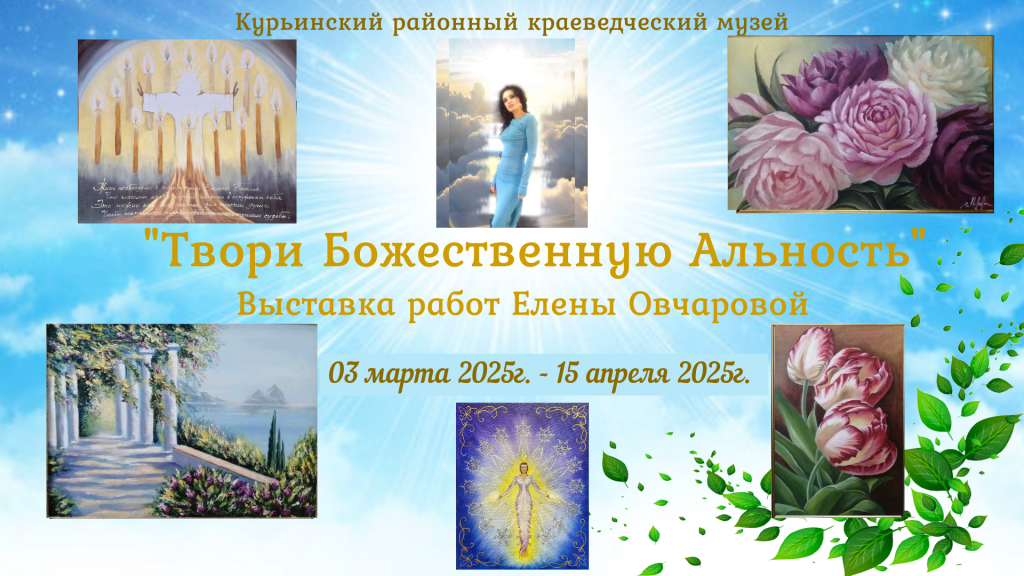 В Курьинском краеведческом музее с 3 марта по 15 апреля проводится выставка картин Елены Овчаровой «Твори Божественную Альность», на которой представляются вдохновляющие художественные полотна.