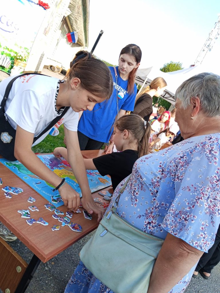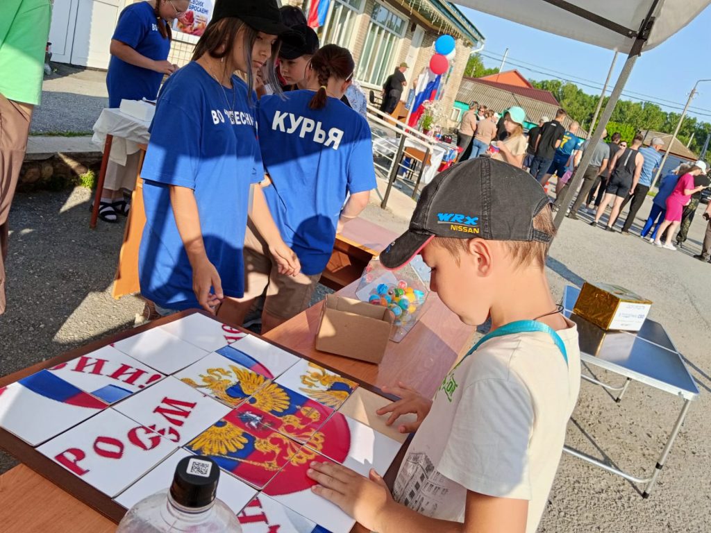 Курьинский районный краеведческий музей принял участие в праздновании Дня России, которое состоялось на площади возле районного дома культуры. Учреждениями культуры совместно с волонтерским отрядом «Ровесник» было организовано интерактивное пространство, где каждый желающий мог найти занятие по душе. Гости могли посетить информационную выставку, которая знакомила с историей праздника, сфотографироваться в фотозоне, блеснуть своими знаниями о нашей любимой стране, отгадывая вопросы викторин, играя в «Пятнашки», собирая герб России, пазлы о нашей Родине и многое другое. За правильно выполненные задания участники получали тематические призы. Также для желающих были подготовлены мастер – классы по изготовлению сувениров, посвященных символам России: матрешки, самовары, цветы и, конечно же – флажки. Совместно с волонтерским движением «Шаг навстречу Победе» были проведены мастер – классы по изготовлению «сухого душа» и плетения «браслетов выживания» для участников специальной военной операции. Все это было организовано на площади, где звучали песни о нашей любимой стране. День России — это важный день, объединяющий всех россиян независимо от национальности, вероисповедания и социального статуса.