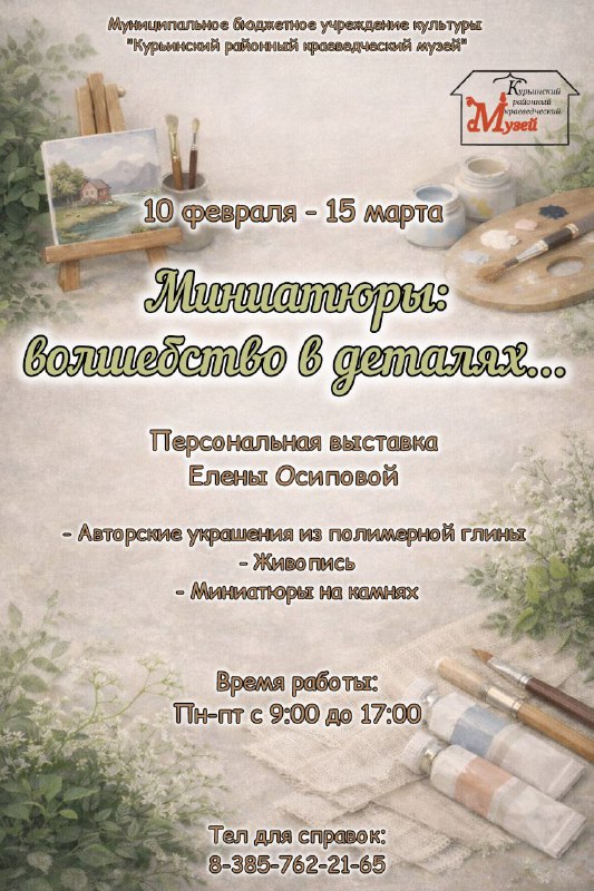 10 февраля в Курьинском районном краеведческом музее открылось две новые выставки: персональная выставка Елены Осиповой «Миниатюры: волшебство в деталях…» и выставка кукол Раисы Соловиченко «Рожденные в СССР». На выставках каждый найдет работы по душе: здесь вы сможете полюбоваться пейзажами и натюрмортами, рассмотреть удивительные миниатюры на камне, восхититься винтажными украшениями, вспомнить наши союзные республики и рассмотреть их национальные костюмы, изготовленные мастером вручную. Выставки будут работать до 15 марта. Ждем вас в нашем музее!