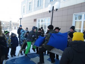 Участникам повзрослее предложили показать свою силушку богатырскую – потолкать вверх гирю. А сноровку и меткость проявить можно было, приняв участие в состязание «попади в цель». Для этого нужно было головой вниз через ноги попасть маленьким мячиком в обруч, причем на расстоянии. И таких ловкачей оказалось немало.