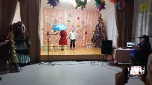 С самого начала представления сказочные герои увлекли зрителей в волшебный мир сказки. Зрители окунулись в праздничную атмосферу приключений, поучаствовали в интересных конкурсах. С появлением Деда Мороза начался настоящий праздник -концерт с песнями , танцами, стихами и конкурсами для зрителей.
