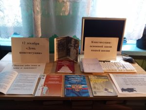 12 декабря 2023 года в Казанцевском ДК было проведено мероприятие ко Дню Конституции.Это один из значимых государственных праздников России.Была оформлена выставка. Из моего рассказа дети узнали что такое Конституция, познакомились с историей создания ее, о правах и обязанностях граждан и о государственном устройстве органов власти РФ, и что кроме Конституции существуют ” Конвенция о правах ребенка”, “Семейный кодекс”, “Гражданский кодекс”, ” Трудовой кодекс “, “Уголовный кодекс”.