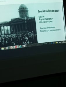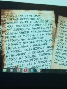 К 80 – летию снятия блокады Ленинграда был представлен видеофильм “Непокорённые” для молодого поколения нашего села. Этот фильм о письмах людей, живших в осажденном городе .Они лучше всего передают историю блокадного Ленинграда. В заключении фильма автор сказал, что фашизм – это нарыв на теле человечества. И до тех пор пока он будет существовать, до тех пор будут войны.