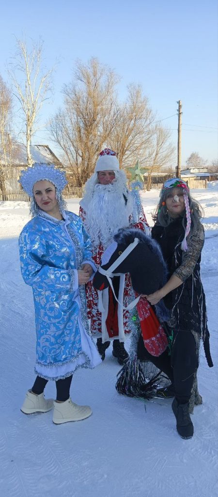 Сегодня в замечательный тёплый,зимний день!!!Артисты и работники СДК совместно с главой администрации сельского совета А.В.Трясуновым,который был шофёром у Красавицы Снегурочки,Дедушки Мороза и Заводилы Бабки Яги.Сегодня мы с огромным удовольствием поздравили семьи ребят которые в данный момент находятся в местах проведения специальной операции.Ребятишкам вручены сладкие подарки.От Деда Мороза и Снегурочки тёплые,добрые пожелания на наступающим год!Даже сама Баба Яга желала всем добра и мира !Пусть 2026 год станет для всех нас самым лучшим,а главное мирным.