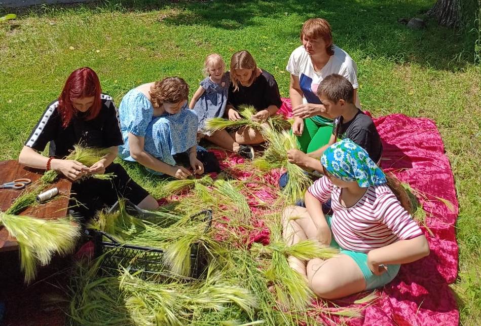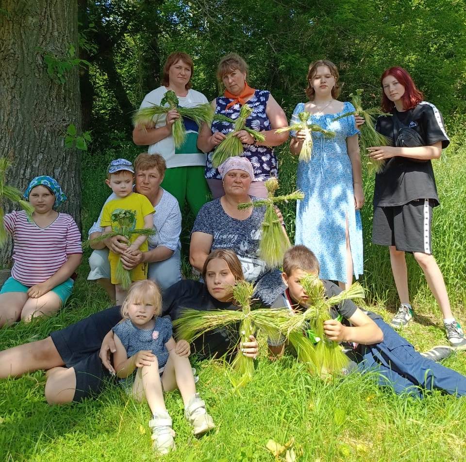 Совместное мероприятие на троицу состоялось 23 июня в 11часов. Началось с просмотра видео-презентации «Троица – зеленые святки» . ответили на вопросы викторины по теме, загадали загадки, просмотрели мультфильм «Троицин день». Дальше мероприятие продолжилось на поляне возле ДК. Траву мы нарезали заранее, расположившись на покрывале начали изготовление куклы. Мы показывали каждый этап и присутствующие все повторяли, в итоге у каждого получился оберег сделанный своими руками. Мероприятие получилось познавательным и веселым.