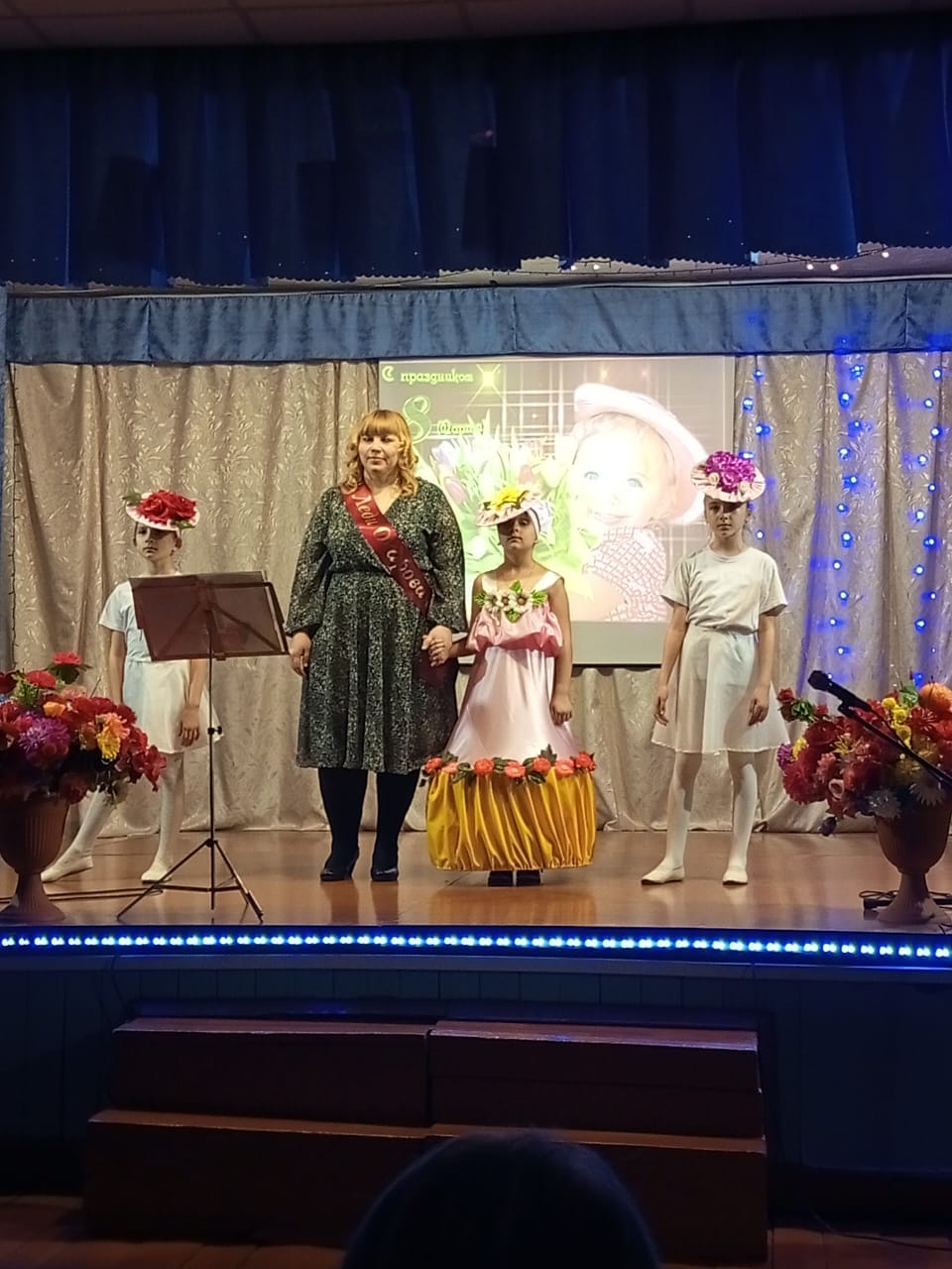 Отдельным блоком были поздравления для мам. Звучали стихи и песни посвященные мамам, которые исполнили не только взрослые участники художественной самодеятельности но и дети.