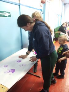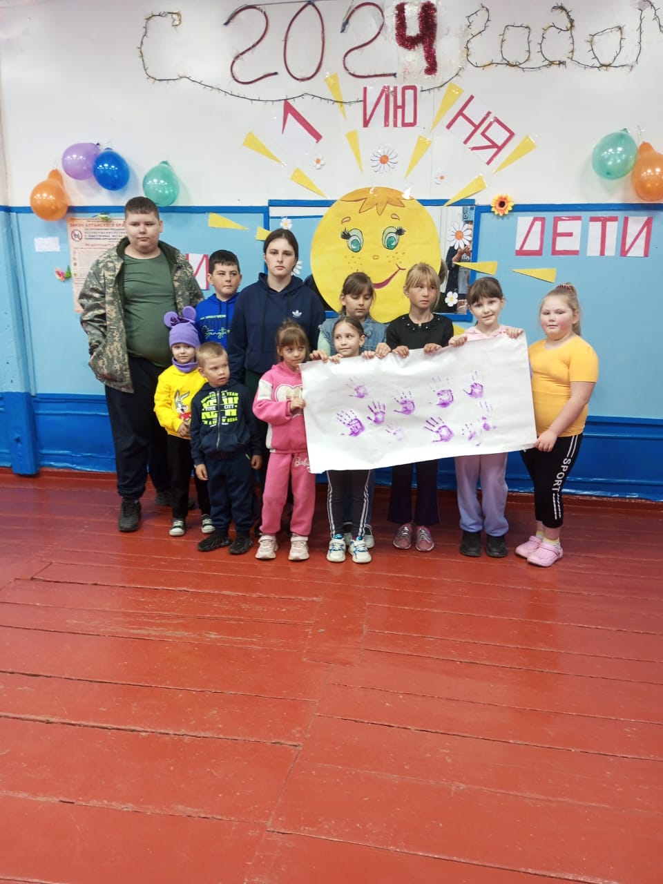 В заключении праздника дети оставили свой отпечаток руки на плакате, были вручены сладкие призы и совместное фото на память.